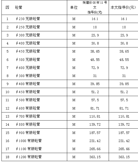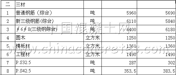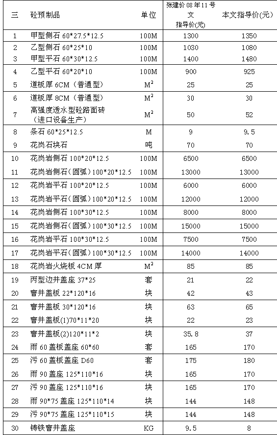 建設工程材料指導價格調整表: