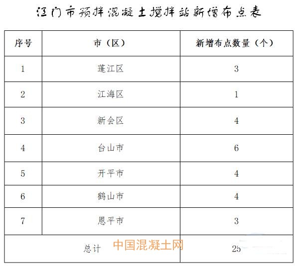 根據各市(區)的發展需求,至2025年底全市增加25個規劃生產點(見附件2)。現有擬搬遷的攪拌站可采取承諾期限內完成遷建的方式保留原規劃生產點,新遷建選址布點不計入新增布點。各市(區)政府確定新規劃布點后,試行以市場配置資源的方式組織實施,并報市住房城鄉建設局備案。市住房城鄉建設局將出臺相關工作指引。