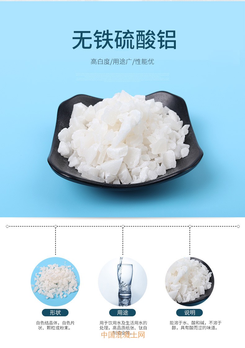 用途:該產(chǎn)品主要用于水處理,制造高級(jí)紙張,鈦白粉后處理,以及催化劑載體,也可作無(wú)堿速凝劑、泡沫滅火劑,絕熱材料的阻燃劑、耐火材料的添加劑,以及人造寶石的原料等。