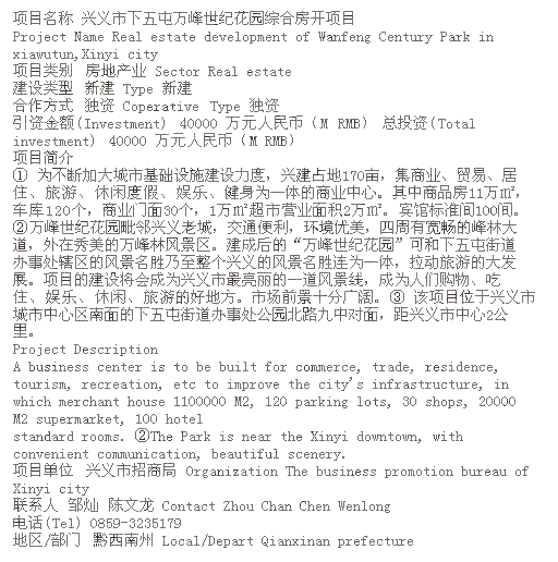 貴州興義市下五屯萬峰世紀花園綜合房開項目