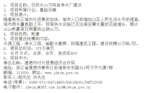 浙江日供水10萬噸自來水廠建設項目
