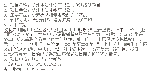 浙江杭州中法化學(xué)有限公司搬遷投資項目