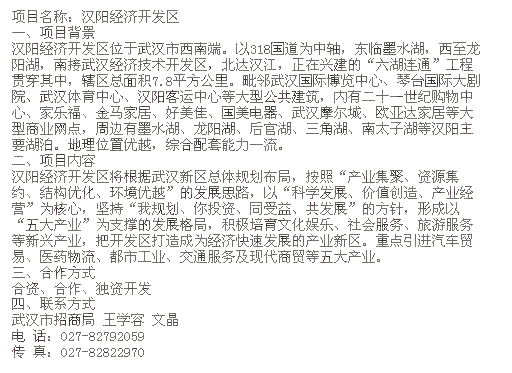 湖北漢陽經(jīng)濟(jì)開發(fā)區(qū)項(xiàng)目招商引資