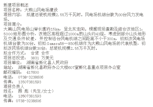 湖南大熊山風電場建設招商引資