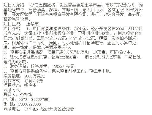 浙江金西開發(fā)區(qū)污水處理工程項目