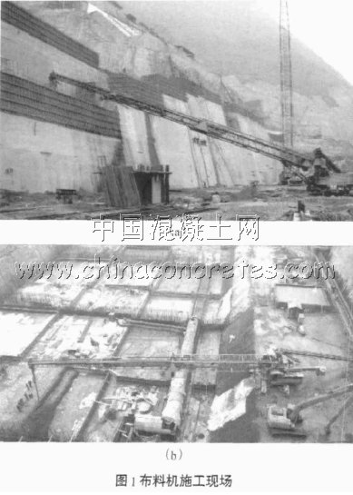 帶式布料機作為一種新的混凝土施工設備,它是用各種起重機逐罐吊運混凝土的斷續輸澆筑式向連續施工的一場革命。因過去對帶式輸送機的特點認識不足,缺乏專用設備,在骨料分離、灰漿損失、設備的機動性和可靠性等問題上未能妥善解決。半個世紀來,混凝土施工仍然采用傳統的纜索起重機和門機、塔機等起重設備吊運入倉,或采用混凝土泵澆筑。因此,我國在該領域的施工技術長期以來沒有取得大的突破。在國外,早在上世紀20 年代,帶式輸送機就曾用于混凝土運輸。到了40 年代,美國安大略水電局的7 個工程,均采用帶式輸送機施工。我國早期的新安江、劉家峽等工程曾有用帶式輸送機進行混凝土澆筑的實踐。
