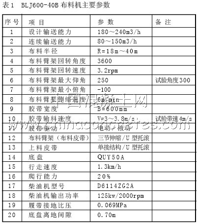 3.9 BLJ600-40B布料機主要參數(見表1)