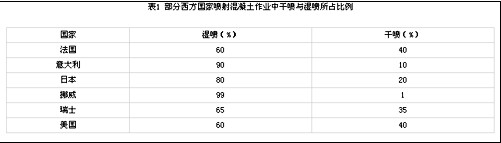目前,在一些西方國家中,濕式混凝土噴射機已逐漸成為主要的噴射混凝土作業機具(見表1)