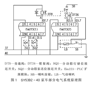 三一重工的SY5392-40泵車采用了西門子公司的S7-200系列PLC 控制系統,由1個CPU224和2個EM223擴展模塊組成。