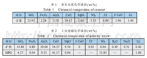 水泥由武漢亞東水泥有限公司吳家山研磨廠生產(chǎn)的亞東水泥, 品種等級(jí)為42.5 普通硅酸鹽水泥,化學(xué)分析見表1。