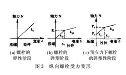 ?。╝)螺栓的彈性階段(b)螺栓的彈塑階段 (c)預應力下螺栓的彈塑性階段