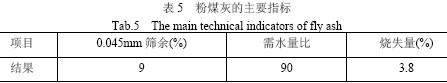粉煤灰選用天津軍電合利Ⅰ級粉煤灰,其主要性能符合國家標準《粉煤灰混凝土應用技術程》,其主要技術指標見表5。