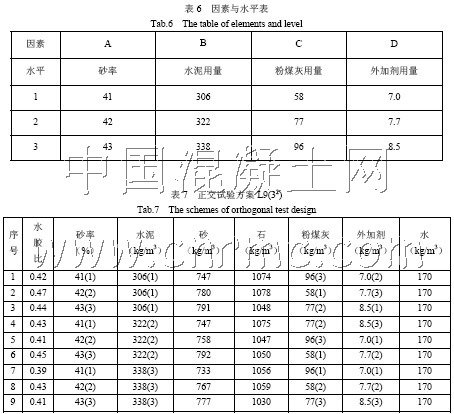 c)影響28 d 抗壓強度順序為水泥、外加劑、粉煤灰、砂率(BDCA),最優配合比A1B3C3D1;
