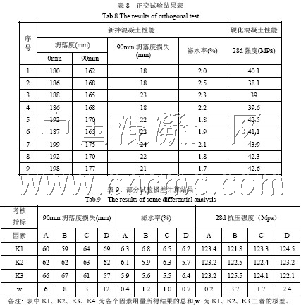 a)影響90min 坍落度損失順序為外加劑、水泥、砂率、粉煤灰(DBAC),最優配合比A3B3C1D1;