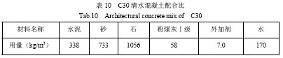 清水混凝土有很高的表面色澤和光潔度的質量要求,要求澆筑飾面清水混凝土要保持自然色,表面色澤均勻,顏色一致,在配合比設計時優選出滿足強度等級要求,施工性能良好的混凝土是確保混凝土的施工質量控制的關鍵措施。