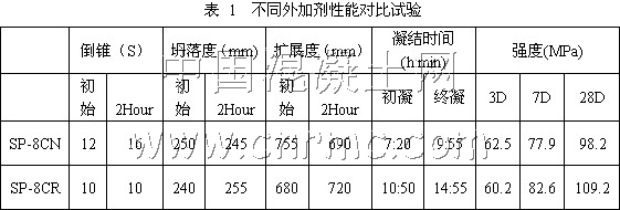 在經過前期不同生產廠家的產品的對比后,最后在上海麥斯特建工高科技建筑化工有限公司提供的GLENIUM SP-8CN 和CR的對比上。