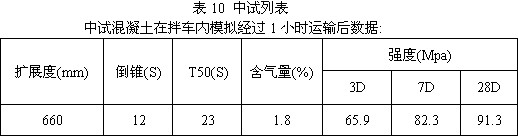 由于施工周期在夏季,所以在外加劑的選擇過程中,我們在關注新拌混凝土的和易性同時,還考察其1小時和2小時的坍損情況。