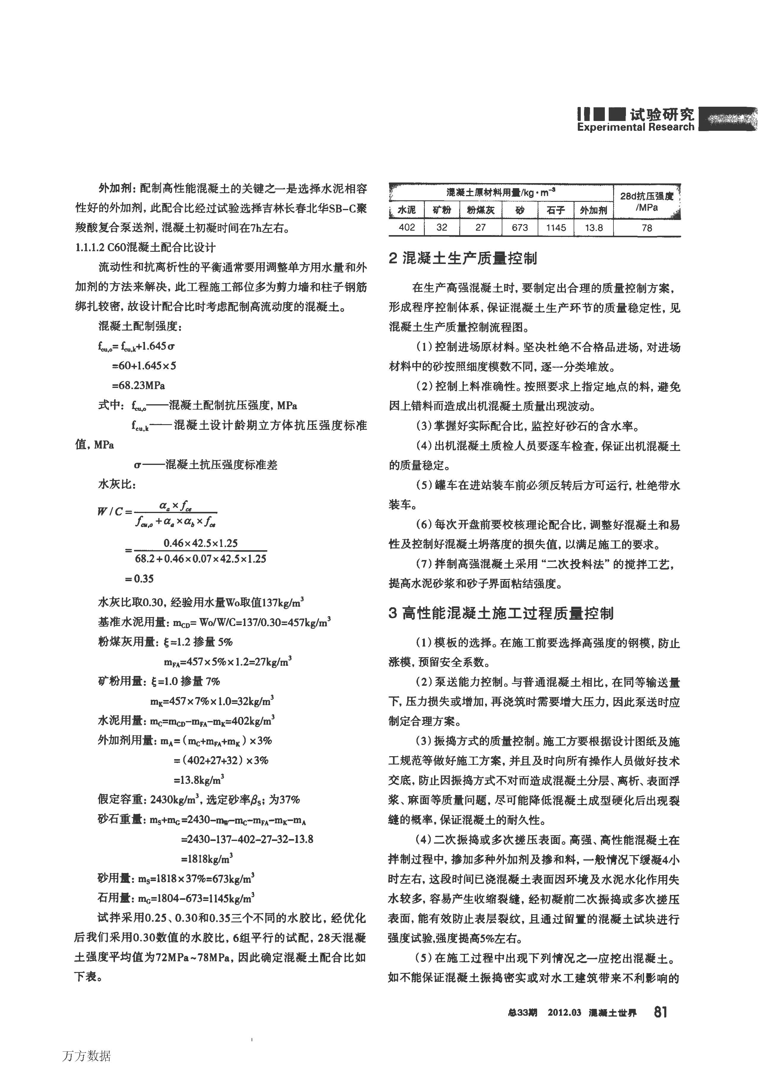 點擊下載全文:C60高強混凝土在某商業建筑工程中的應用
