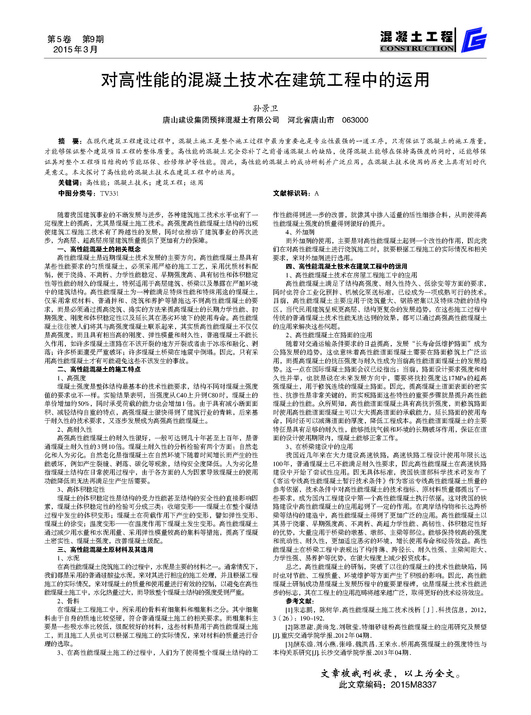 點擊下載全文:對高性能的混凝土技術在建筑工程中的運用