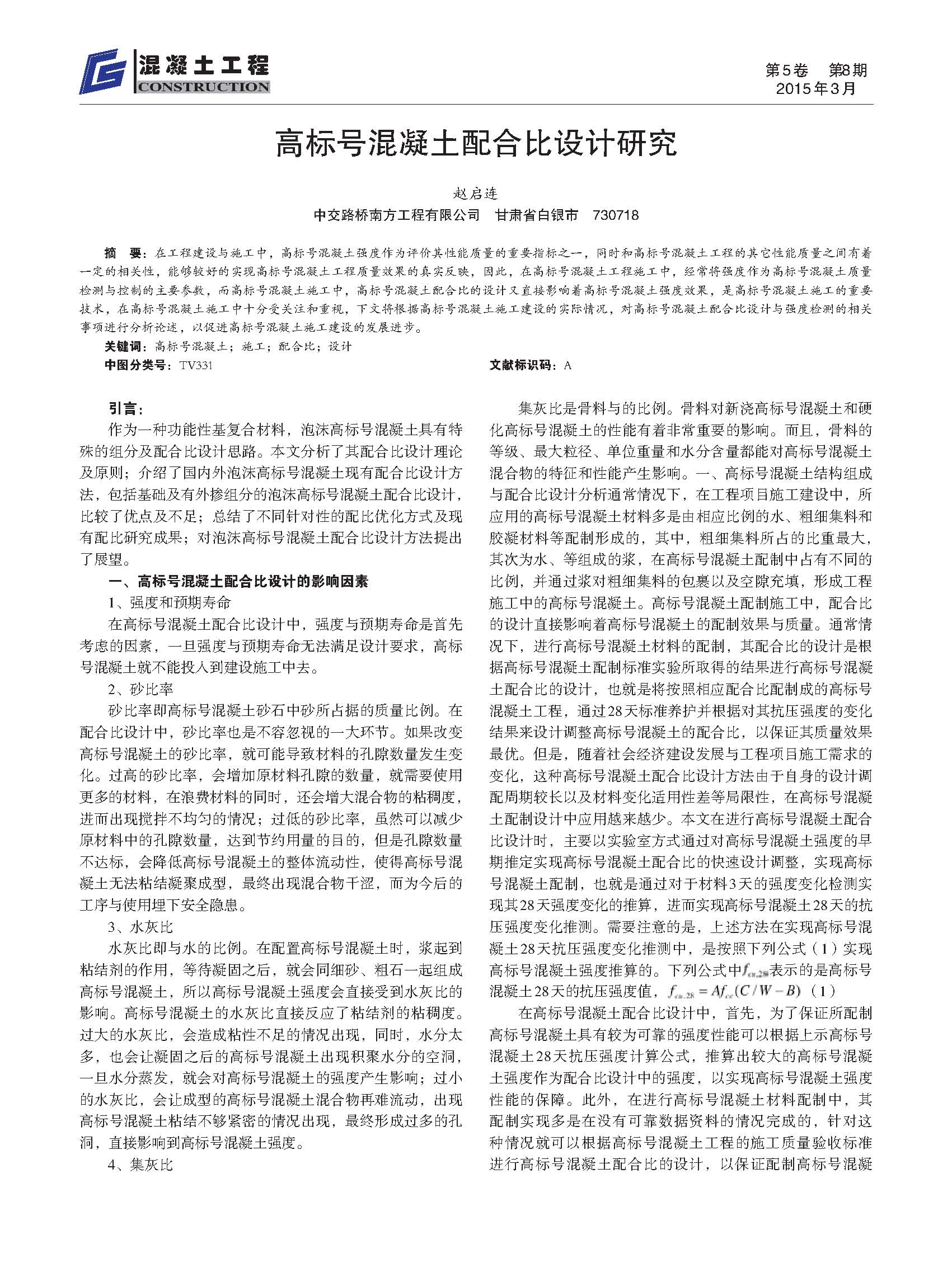 核心提示:在工程建設與施工中,高標號混凝土強度作為評價其性能質量的重要指標之一,同時和高標號混凝土工程的其它性能質量之間有著一定的相關性,能夠較好的實現高標號混凝土工程質量效果的真實反映,因此,在高標號混凝土工程施工中,經常將強度作為高標號混凝土質量檢測與控制的主要參數,而高標號混凝土施工中,高標號混凝土配合比的設計又直接影響著高標號混凝土強度效果,是高標號混凝土施工的重要技術,在高標號混凝土施工中十分受關注和重視,下文將根據高標號混凝土施工建設的實際情況,對高標號混凝土配合比設計與強度檢測的相關事項進行分析論述,