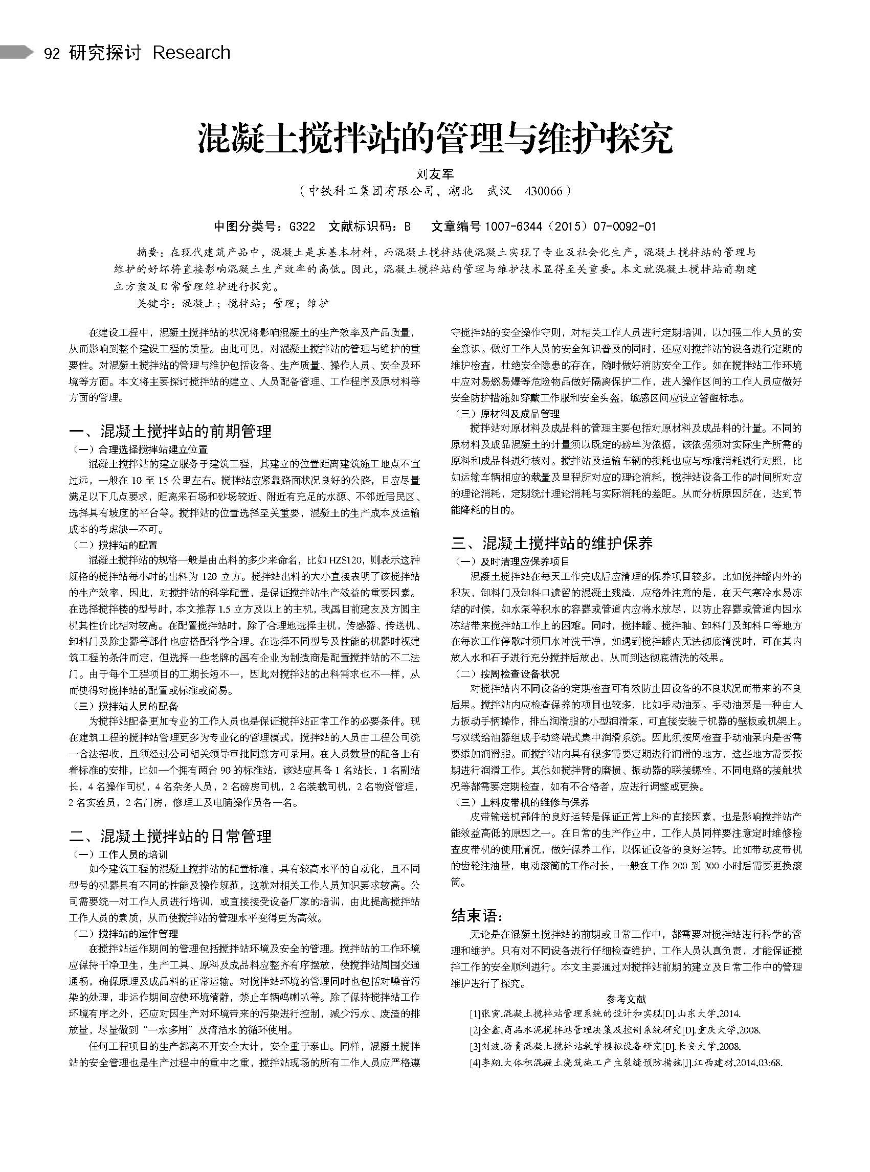 點擊下載全文:混凝土攪拌站的管理與維護探究