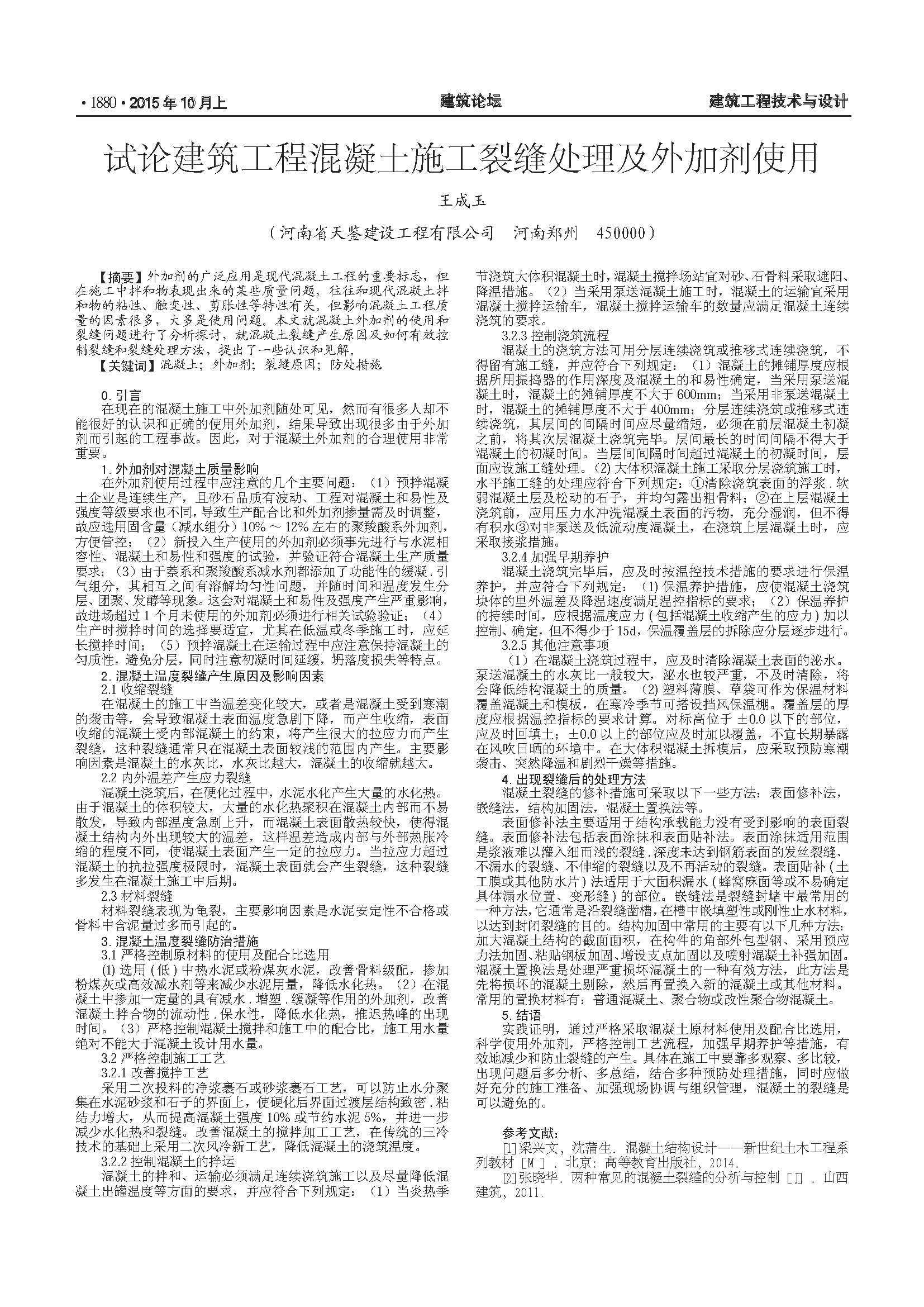 點擊下載全文:試論建筑工程混凝土施工裂縫處理及外加劑使用