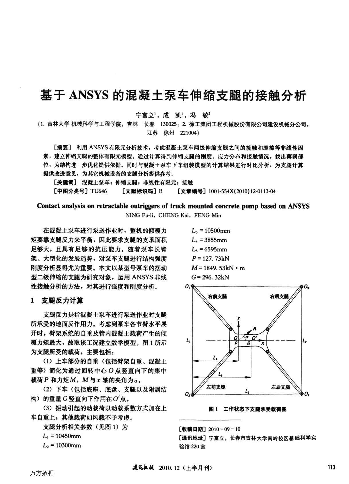 點擊下載全文:基于ANSYS的混凝土泵車伸縮支腿的接觸分析