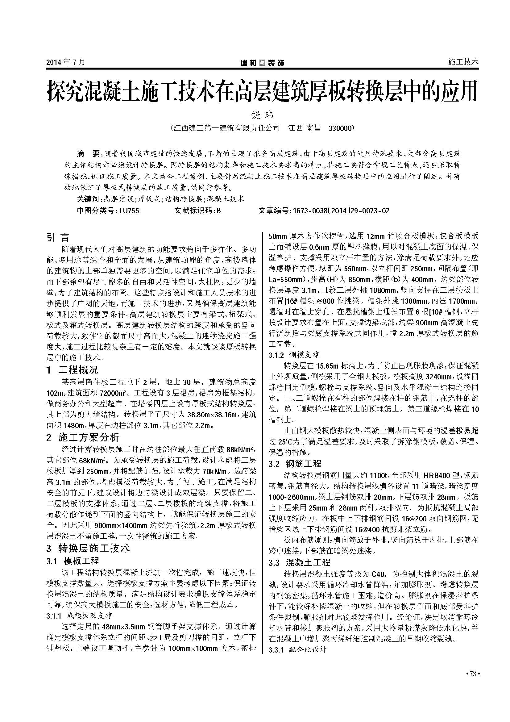 點擊下載全文:探究混凝土施工技術在高層建筑厚板轉換層中的應用