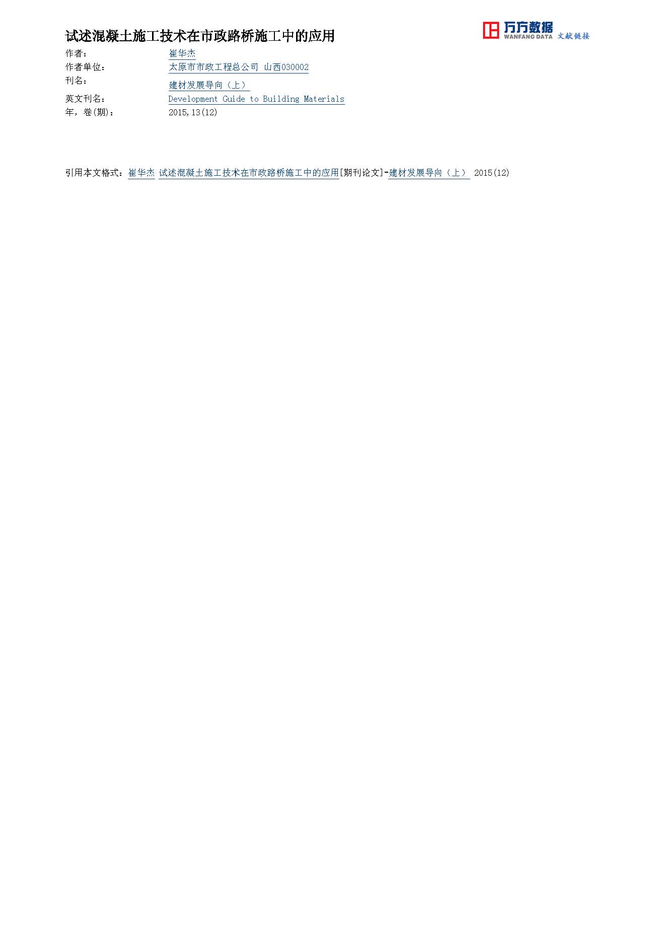 點擊下載全文:試述混凝土施工技術在市政路橋施工中的應用
