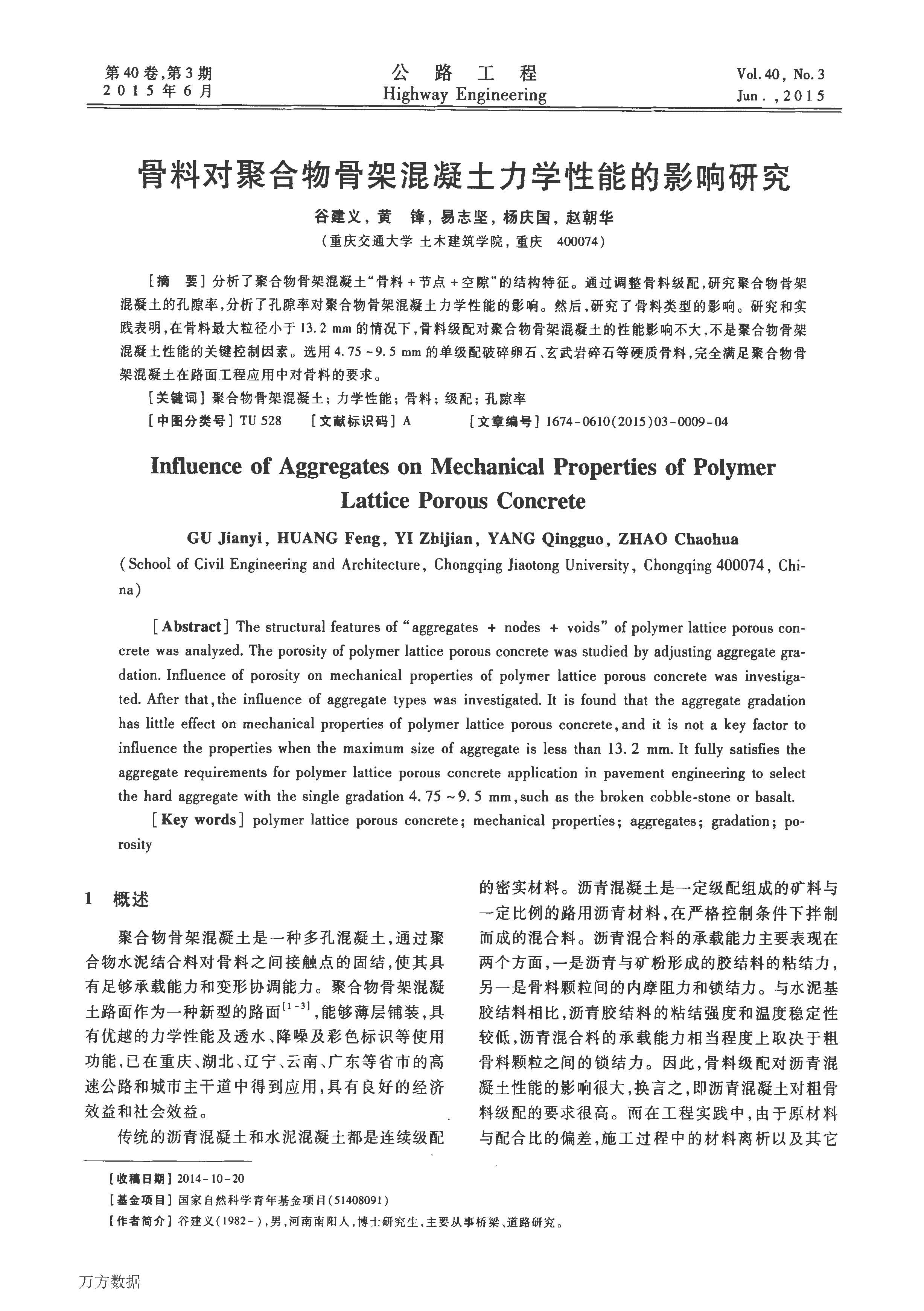 核心提示:分析了聚合物骨架混凝土“骨料+節(jié)點+空隙”的結構特征.通過調(diào)整骨料級配,研究聚合物骨架混凝土的孔隙率,分析了孔隙率對聚合物骨架混凝土力學性能的影響.然后,研究了骨料類型的影響.研究和實踐表明,在骨料最大粒徑小于13.2 mm的情況下,骨科級配對聚合物骨架混凝土的性能影響不大,不是聚合物骨架混凝土性能的關鍵控制因素.選用4.75 ~9.5 mm的單級配破碎卵石、玄武巖碎石等硬質(zhì)骨料,完全滿足聚合物骨架混凝土在路面工程應用中對骨料的要求.