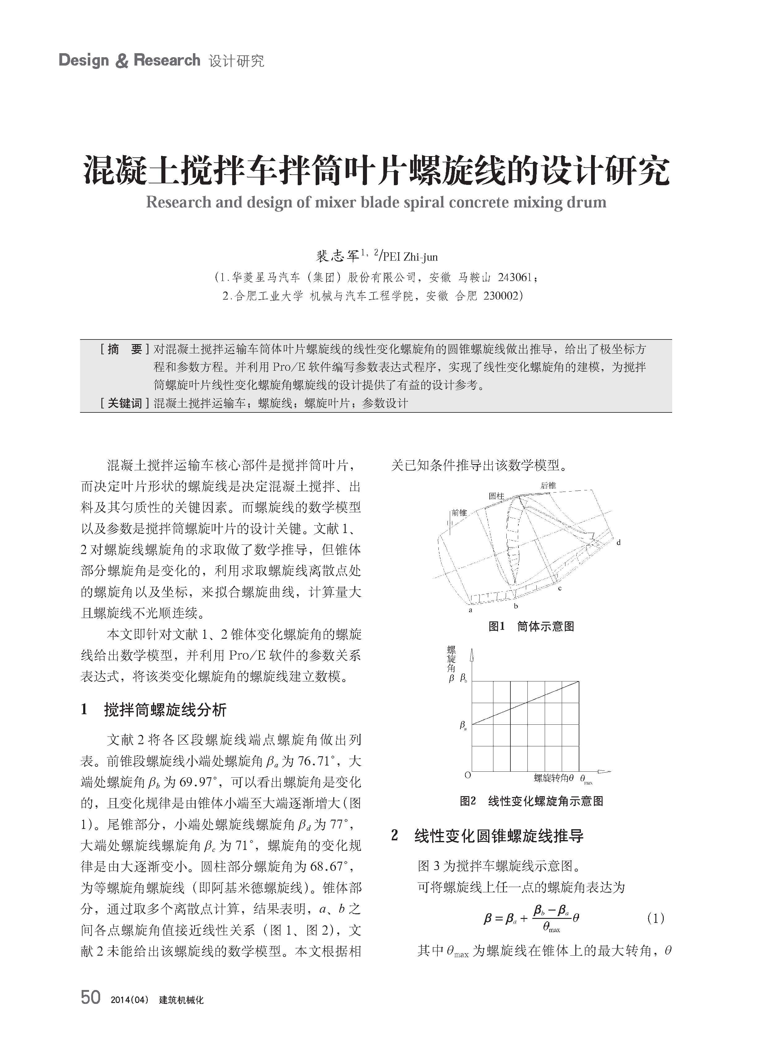 點(diǎn)擊下載全文:混凝土攪拌車拌筒葉片螺旋線的設(shè)計(jì)研究