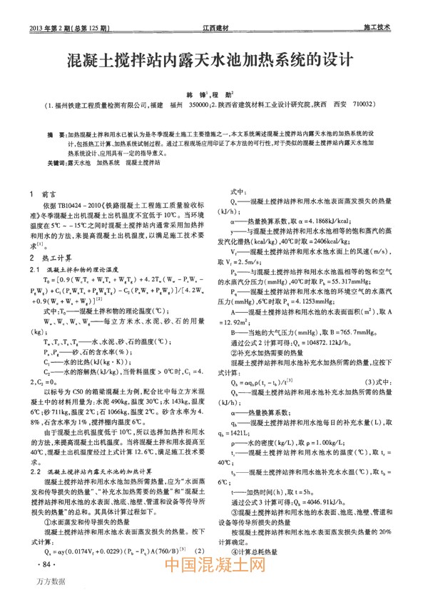 點擊下載全文:混凝土攪拌站內(nèi)露天水池加熱系統(tǒng)的設(shè)計