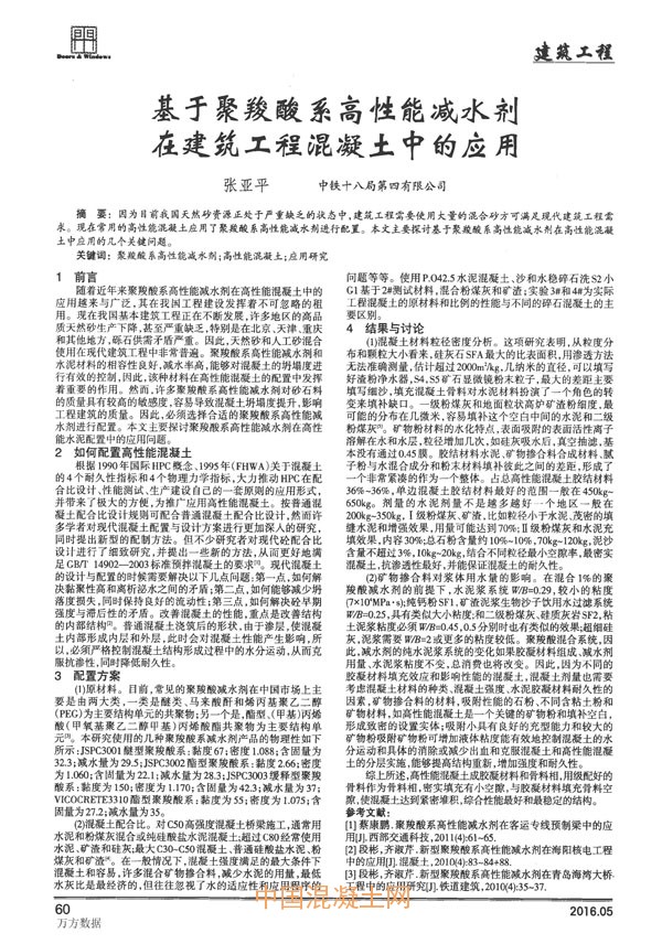 點擊下載全文:基于聚羧酸系高性能減水劑在建筑工程混凝土中的應用