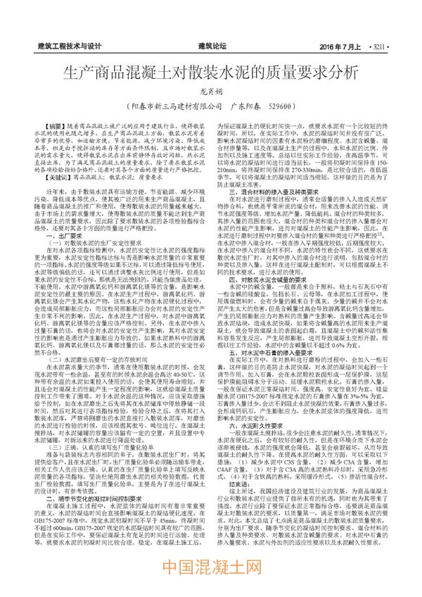 點擊下載全文:生產商品混凝土對散裝水泥的質量要求分析