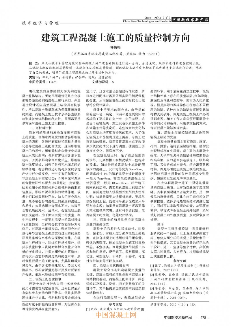 點擊下載全文:建筑工程混凝土施工的質(zhì)量控制方向