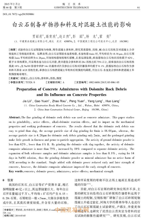 點擊下載全文:白云石制備礦物摻和料及對混凝土性能的影響