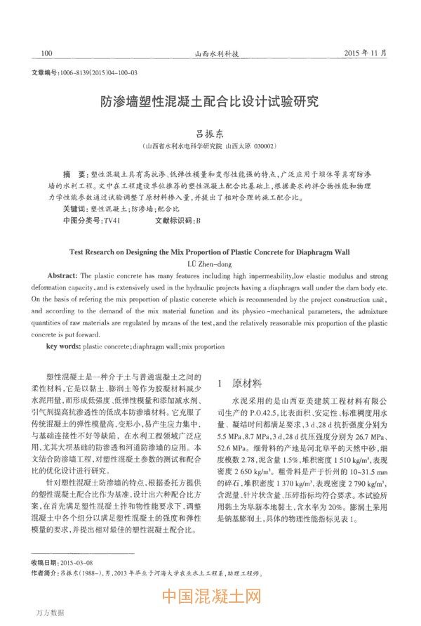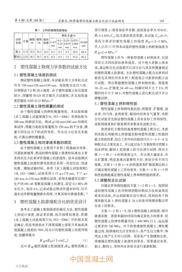 點擊下載全文:防滲墻塑性混凝土配合比設計試驗研究