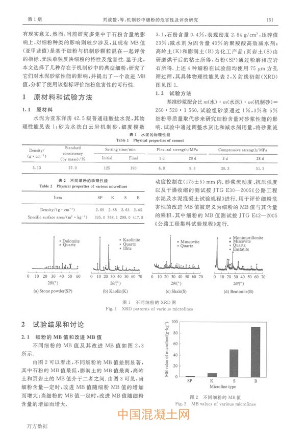 機制砂中細粉的危害性及評價研究