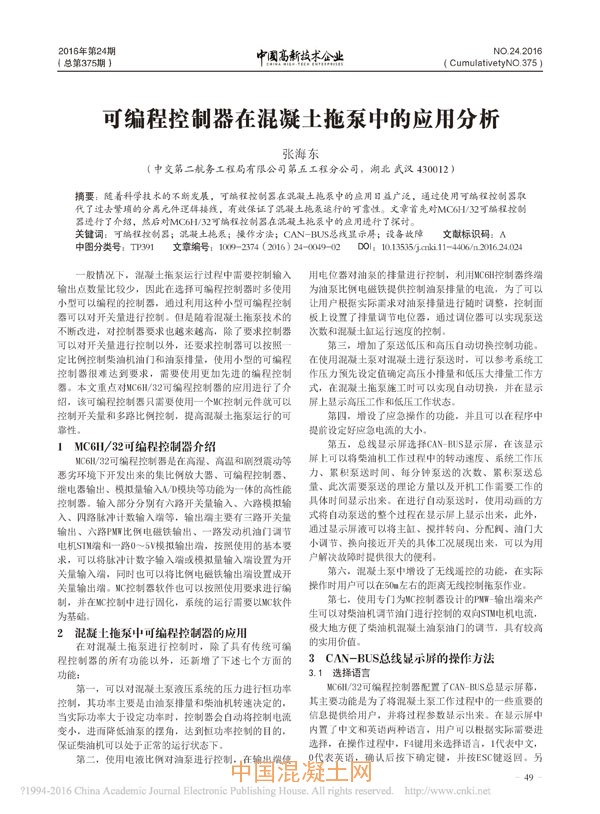 點擊下載全文:可編程控制器在混凝土拖泵中的應用分析
