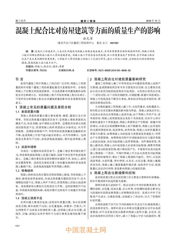 點擊下載全文:混凝土配合比對房屋建筑等方面的質量生產的影響