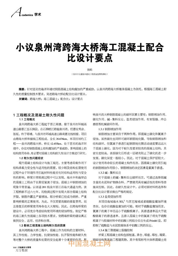 點擊下載全文:小議泉州灣跨海大橋海工混凝土配合比設計要點