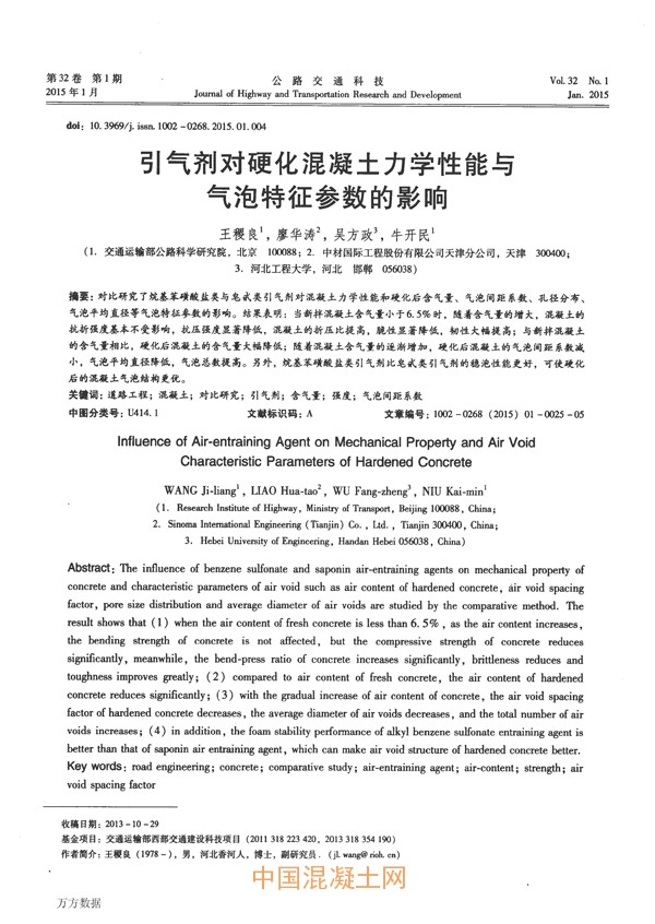 點擊下載全文:引氣劑對硬化混凝土力學性能與氣泡特征參數的影響