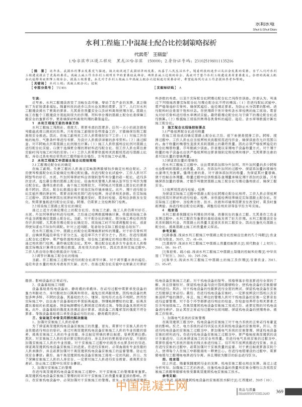 核心提示:近年來,我國水利事業發展突飛猛進,極大地促進了我國經濟的發展,改善了人民生活水平.隨著科技的進步以及社會發展的需要,當下人們對水利工程建設提出了更高的要求.混凝土施工作為水利工程項目中的重要組成部分,確保其施工過程的安全、高效對于整個水利工程建設具有重要意義.合理的混凝土配合比能夠有效保障工程安全,提高工程質量.本文對于水利工程施工中混凝土配合比控制進行簡要分析,希望能給同行業工作者提供參考和幫助.
