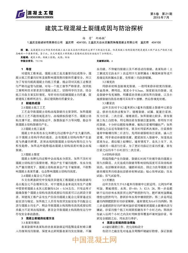 點擊下載全文:建筑工程混凝土裂縫成因與防治探析