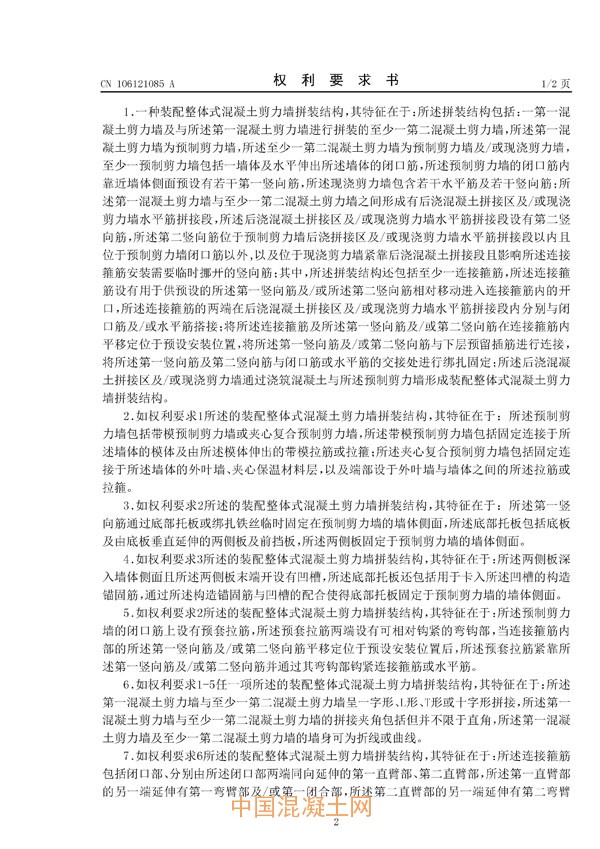 核心提示:本發(fā)明提供了一種裝配整體式混凝土剪力墻拼裝結(jié)構(gòu)及其拼裝方法,所述拼裝結(jié)構(gòu)包括:一第一混凝土剪力墻及與所述第一混凝土剪力墻進(jìn)行拼裝的至少一第二混凝土剪力墻,所述第一混凝土剪力墻為預(yù)制剪力墻,所述至少一第二混凝土剪力墻為預(yù)制剪力墻及/或現(xiàn)澆剪力墻,拼接處設(shè)有開口或臨時開口的連接箍筋,所述連接箍筋與所述第一豎向筋及/或第二豎向筋通過平移等定位于預(yù)設(shè)安裝位置,所述連接箍筋開口端通過所述拉筋及/或約束套箍或焊接緊固;所述后澆混凝土拼接區(qū)及/或現(xiàn)澆剪力墻區(qū)通過澆筑混凝土形成整體結(jié)構(gòu)。