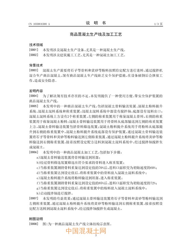 點擊下載全文:商品混凝土生產線及加工工藝(公開號:CN105904590A)