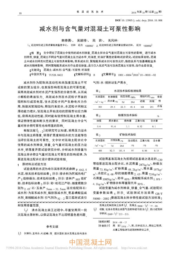 點擊下載全文:減水劑與含氣量對混凝土可泵性影響