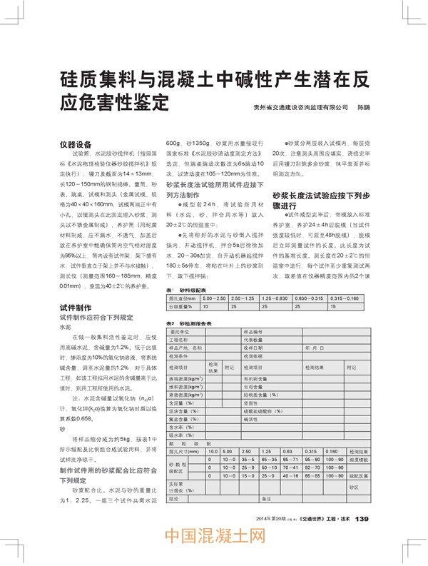 點擊下載全文:硅質集料與混凝土中堿性產生潛在反應危害性鑒定