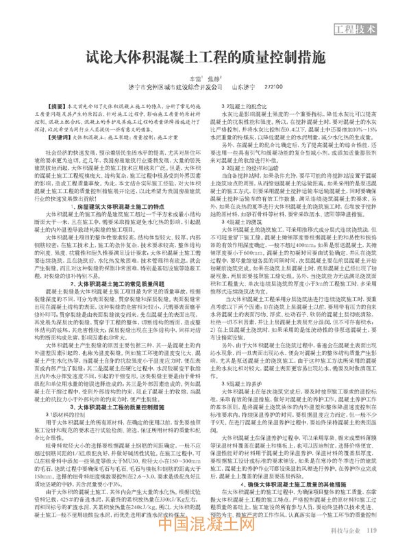 點擊下載全文:試論大體積混凝土工程的質量控制措施