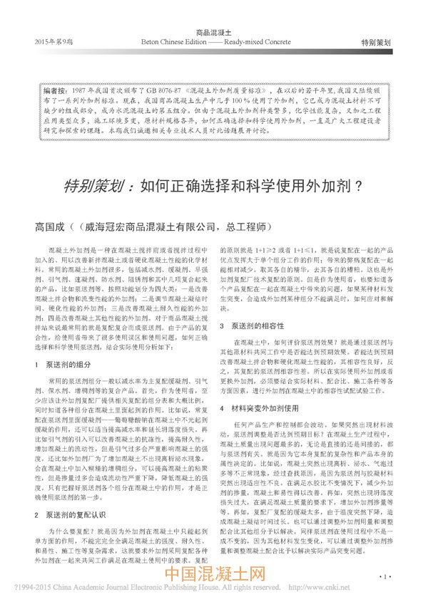 核心提示:1987年我國首次頒布了GB8076-87《混凝土外加劑質(zhì)量標準》,在以后的若干年里,我國又陸續(xù)頒布了一系列外加劑標準。現(xiàn)在,我國商品混凝土生產(chǎn)中幾乎100%使用了外加劑,它已成為混凝土材料不可缺少的組成部分,成為水泥混凝土的第五組分。但由于混凝土外加劑種類繁多,化學性能復(fù)雜,又加之工程應(yīng)用類型眾多,施工環(huán)境多變,原材料規(guī)格各異,如何正確選擇和科學使用外加劑,一直是廣大工程建設(shè)者研究和探索的課題。本期我們誠邀相關(guān)專業(yè)技術(shù)人員對此話題展開討論。